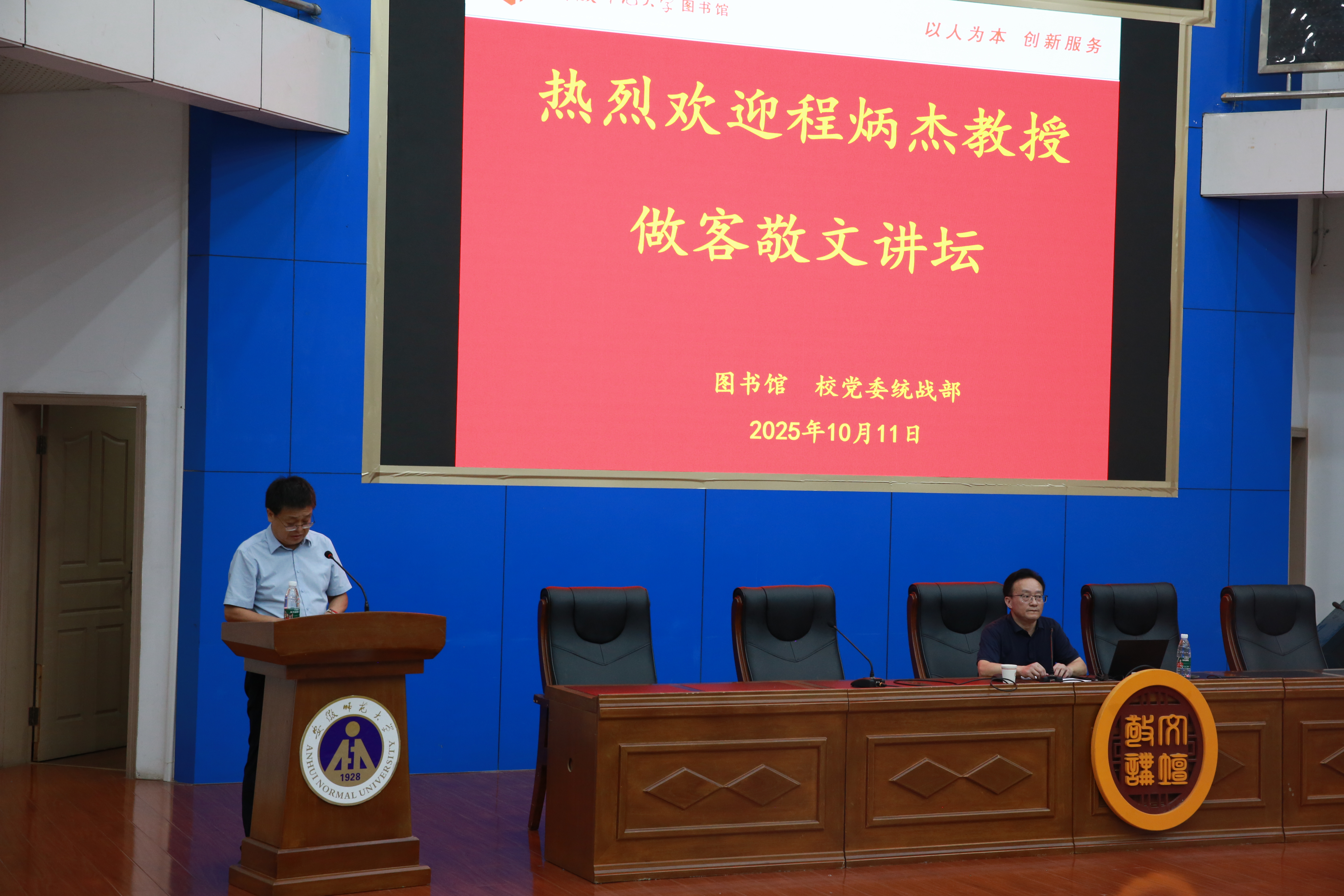 本网讯(文/刘雅洁 图/严永春 鲁梦萍)音乐润心铸魂,旋律化人启智。10月11日下午3点,敬文讲坛2025年第四讲(总第158讲)在敬文图书馆国际学术交流中心举行。安徽师范大学音乐学院副院长、博士生导师程炳杰应邀做了题为“音乐的力量:铸魂与化人”的学术讲座。本次讲座由校图书馆副馆长刘和文主持,全校三百余名师生现场聆听。