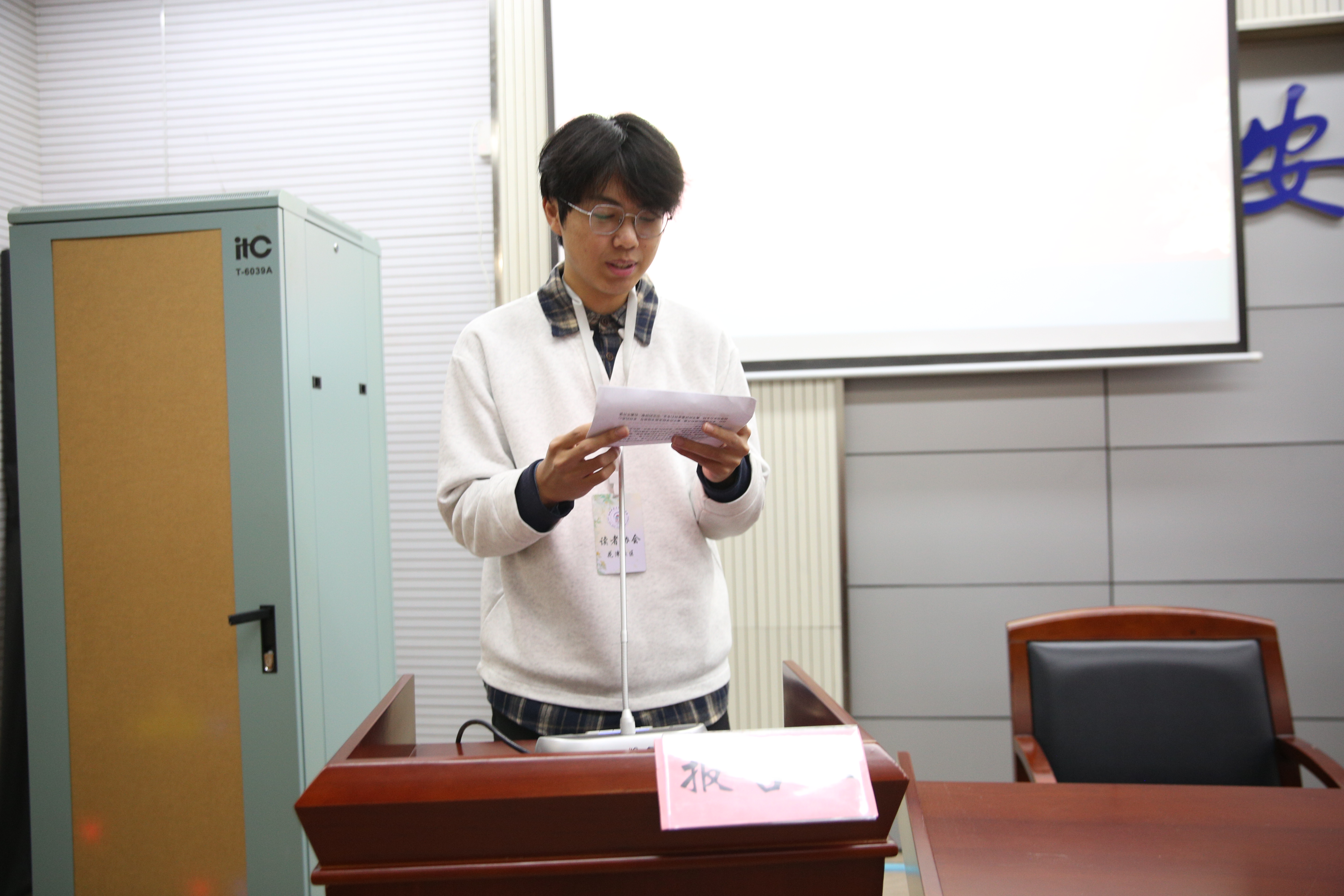 典礼在主持人尚珍巧的介绍中拉开帷幕。读者协会副会长宋士龙首先致辞,解读了“我与诗”的内涵,并向所有笔耕不辍的获奖者致以诚挚祝贺。颁奖环节在激昂的音乐声中拉开序幕,读者协会负责人依次为获奖者颁发荣誉证书及奖品。最后,宋士龙作总结发言,寄语广大同学,要以此次活动为契机,持续在阅读中拓宽生命视野,在书写中沉淀深刻思考,在青春的篇章中留下独特而真挚的印记。