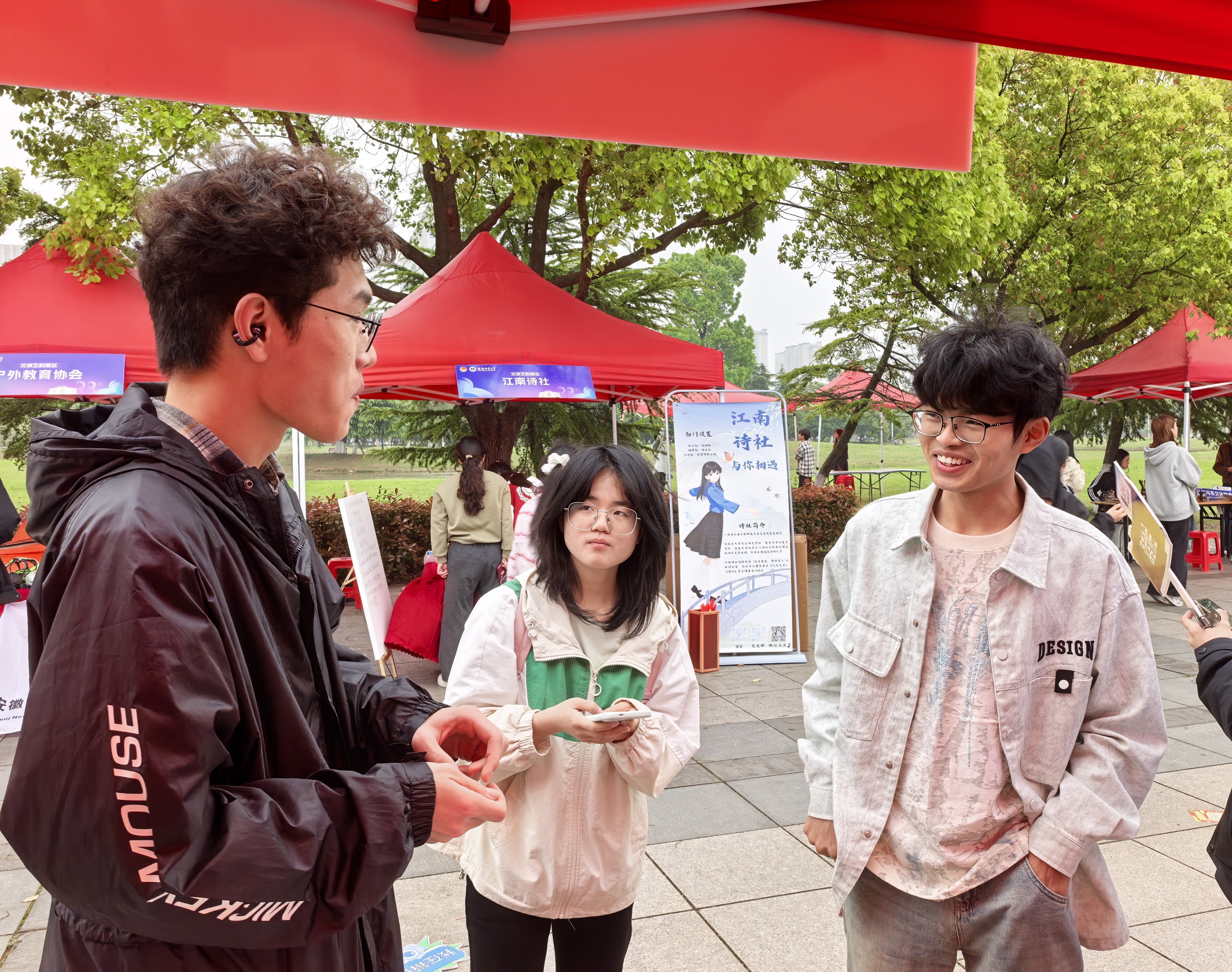 本网讯(文/张需梦 李毅 图/李毅)春和景明,书香伴韶光。为献礼建校98周年,4月11日上午9时,图书馆读者协会在花津校区津南草坪举办“春日雅集,社彩飞扬”主题社团文化节。活动设置三大互动体验区并打通线上渠道,吸引众多师生热情参与,为春日校园点染一缕书卷芬芳。